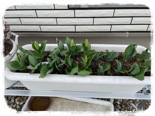 プランターに植えたチューリップの球根。 順調に育っています。 春に綺麗な花を咲かせてくれそうです。